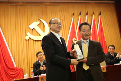 颁奖典礼上的颁奖词是:一个有远见的商人,顺势而行搭上中国经济和平崛起的巨轮;一个负责任的管家,投资他领导的企业,收益十年增长十倍。上市公司的典范,“中国制造”的标杆。